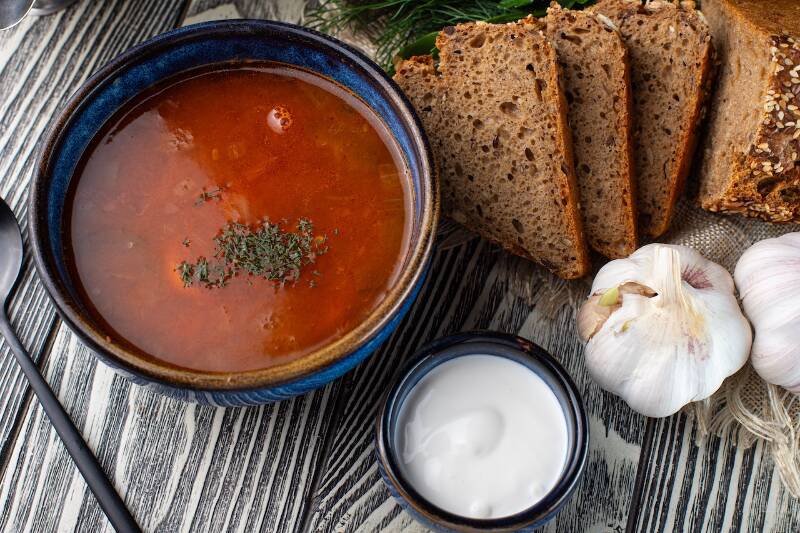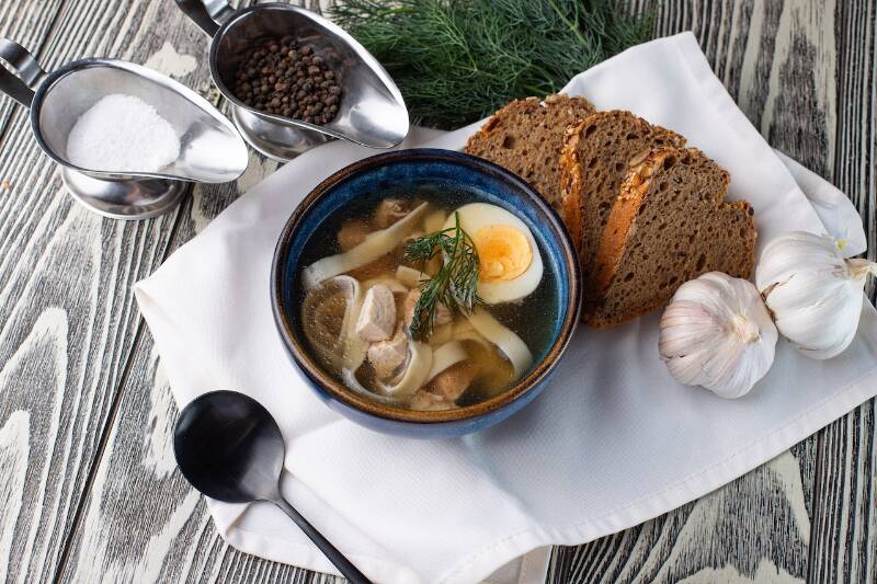 Мука высшего сорта, мука ржаная, дрожжи, соль, сахар, греча вареная, солод темный, масло сливочное, чеснок сухой, вода